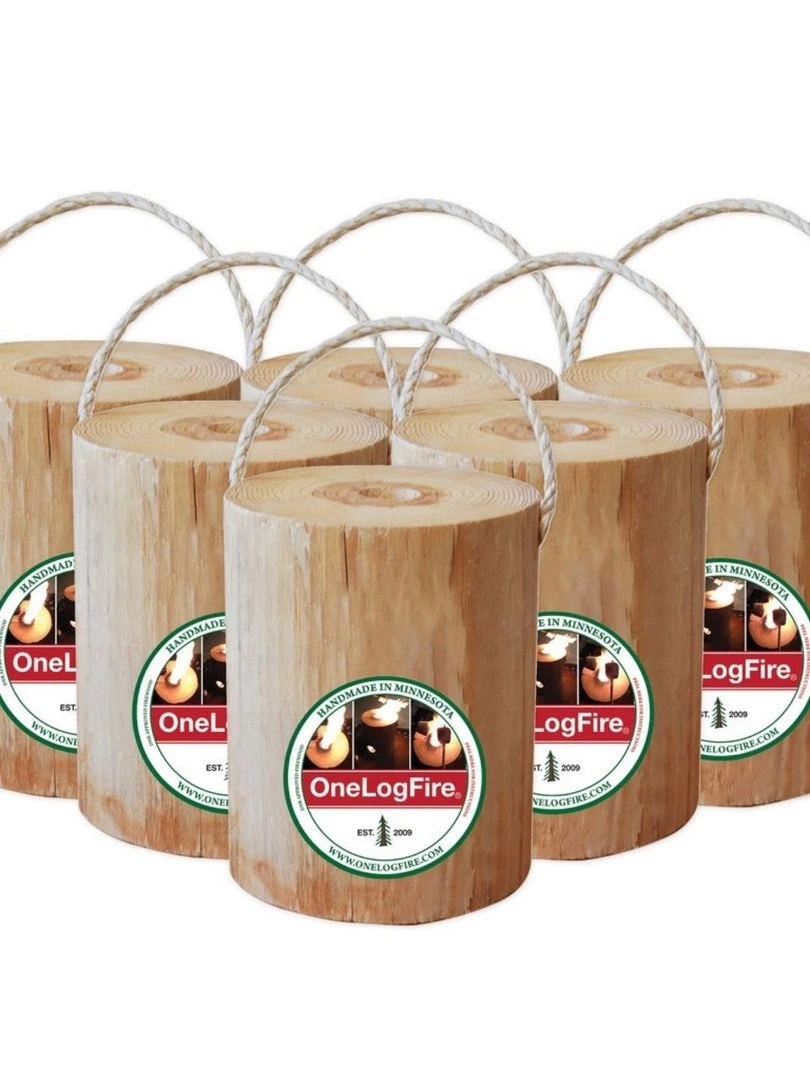 The Original OneLogFire is a portable quick start fire log that burns from the inside out to inspire gatherings around fires everywhere. Light-weight with carrying handle. Easy to light & kiln dried. Up to two hours of burn time. The onelogfire fire logs are handmade in Minnesota.