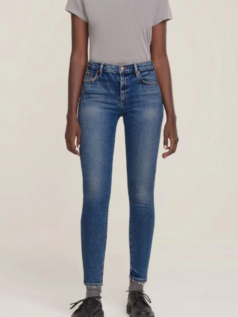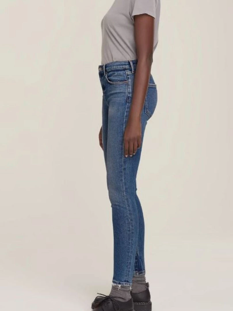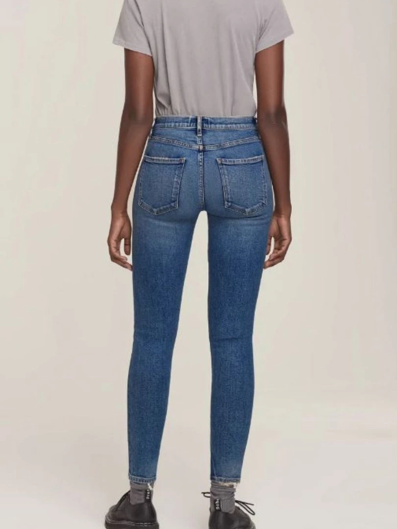Our signature skinny. This timeless mid-rise has a flattering ultra-slim fit, intended to curve and elongate the legs. Made from stretch denim in faded indigo wash.Â