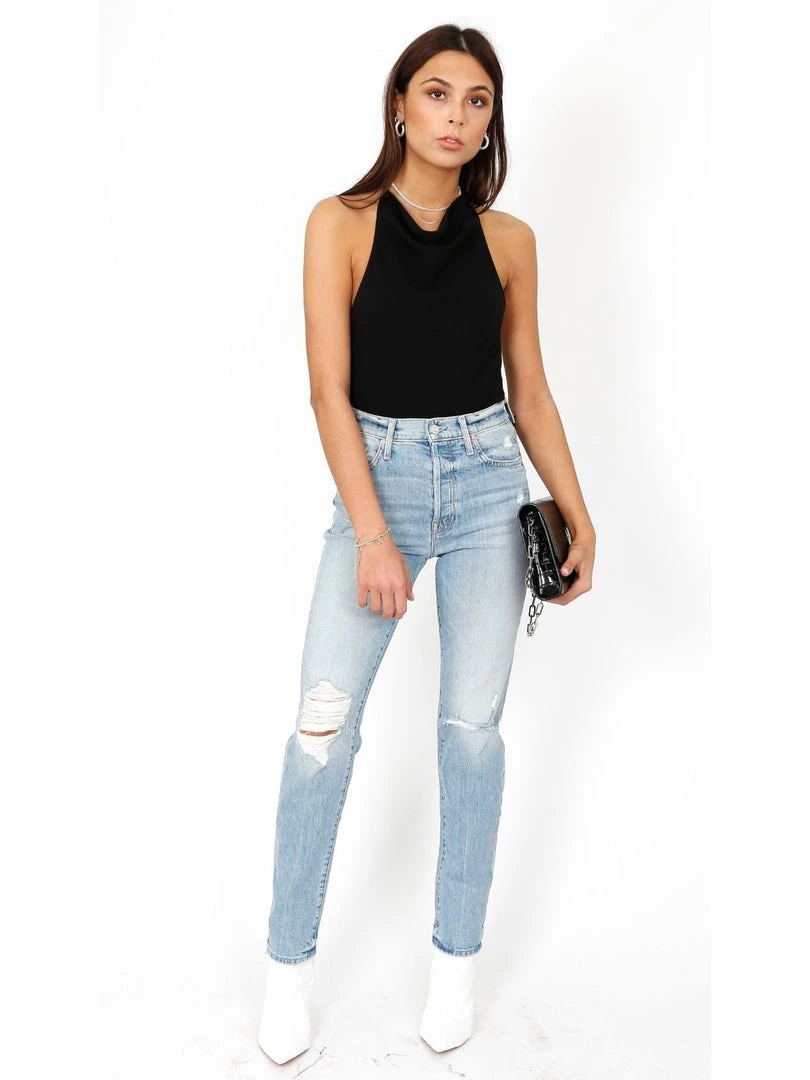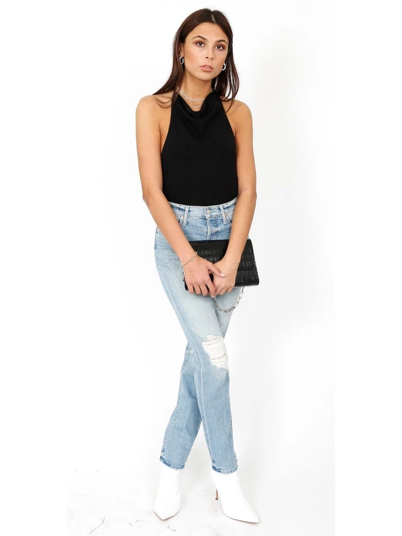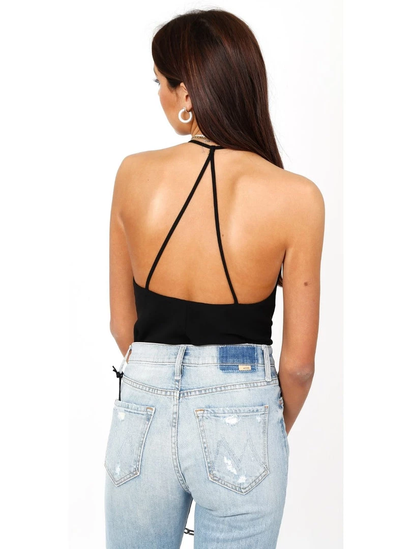 The Kimball Top features a halter neckline and criss cross backing. This back-revealing top instantly elevates any outfit.