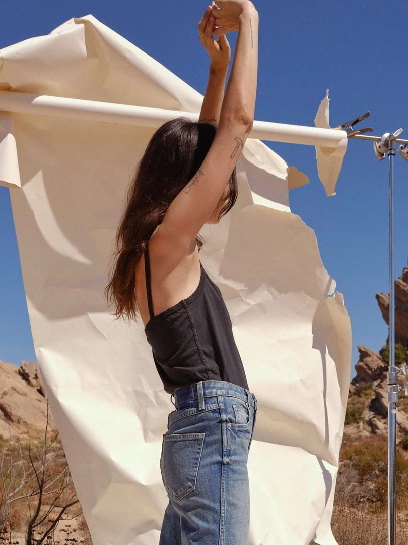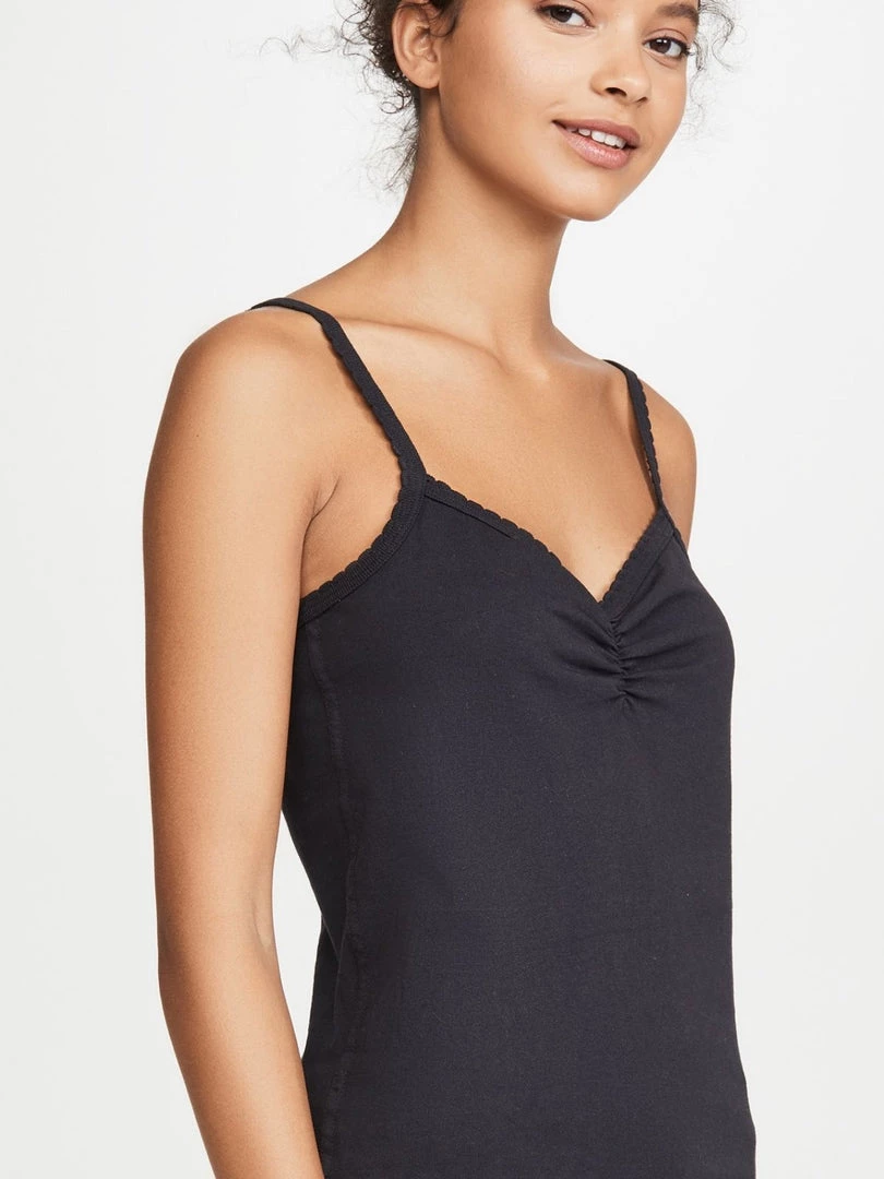 The SCALLOP KNIT CAMI is a vintage inspired cotton camisole tank with feminine scalloped edges and gathered detail at center. Mid weight cotton jersey fabric makes this piece perfect to wear alone, or layered. We love it tucked into high waisted denim.