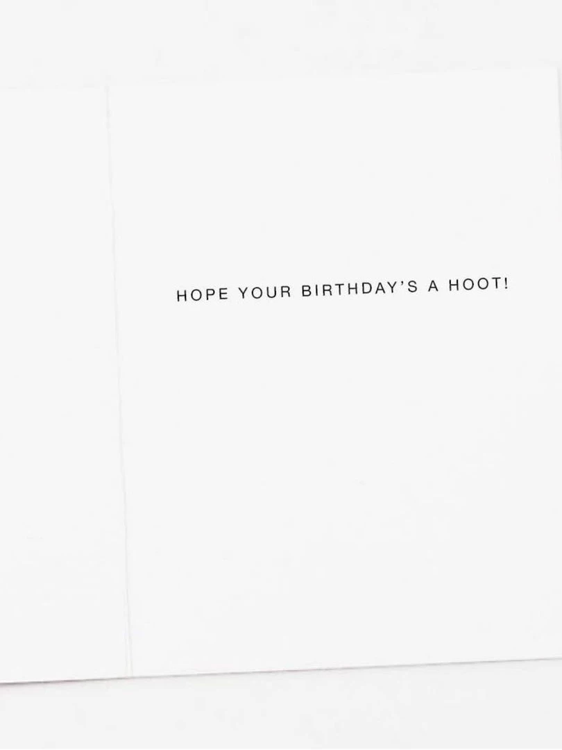 Inside greeting: “HOPE YOUR BIRTHDAY’S A HOOT!”