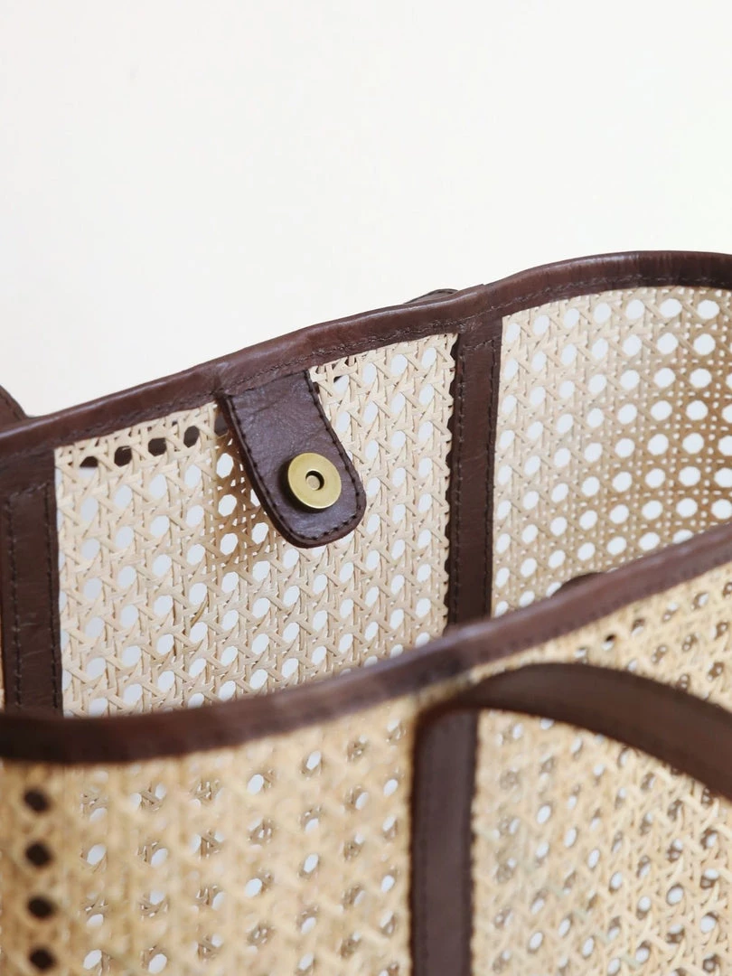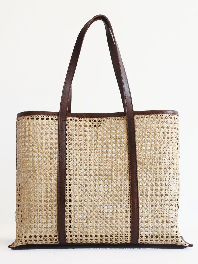 A smart rattan and leather tote in warm collegiate tones. The Margot is the go anywhere, carry everything bag for summer and beyond. With a leather base that can handle the weight of your extra large Perrier, and leather shoulder straps that feel soft as butter on sun-kissed shoulders. In a stylish oversized shape perfect for day trips, lazy beach days, and summer road trips.