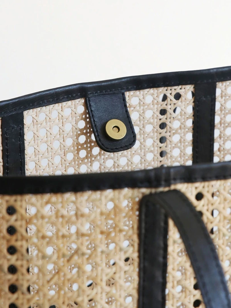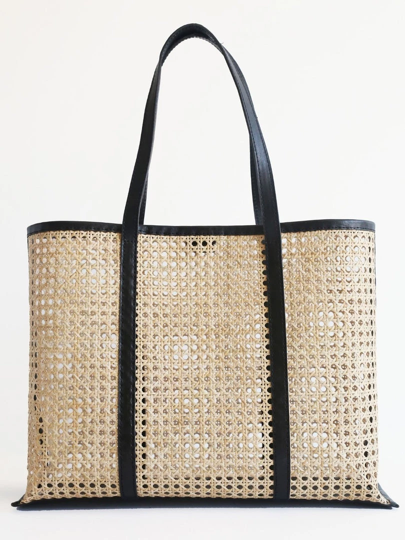 A smart rattan and leather tote in warm collegiate tones. The Margot is the go anywhere, carry everything bag for summer and beyond. With a leather base that can handle the weight of your extra large Perrier, and leather shoulder straps that feel soft as butter on sun-kissed shoulders. In a stylish oversized shape perfect for day trips, lazy beach days, and summer road trips.