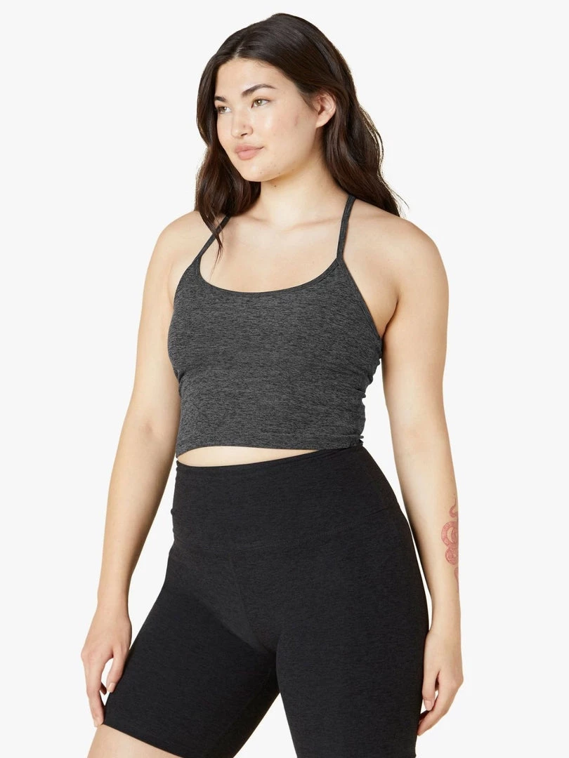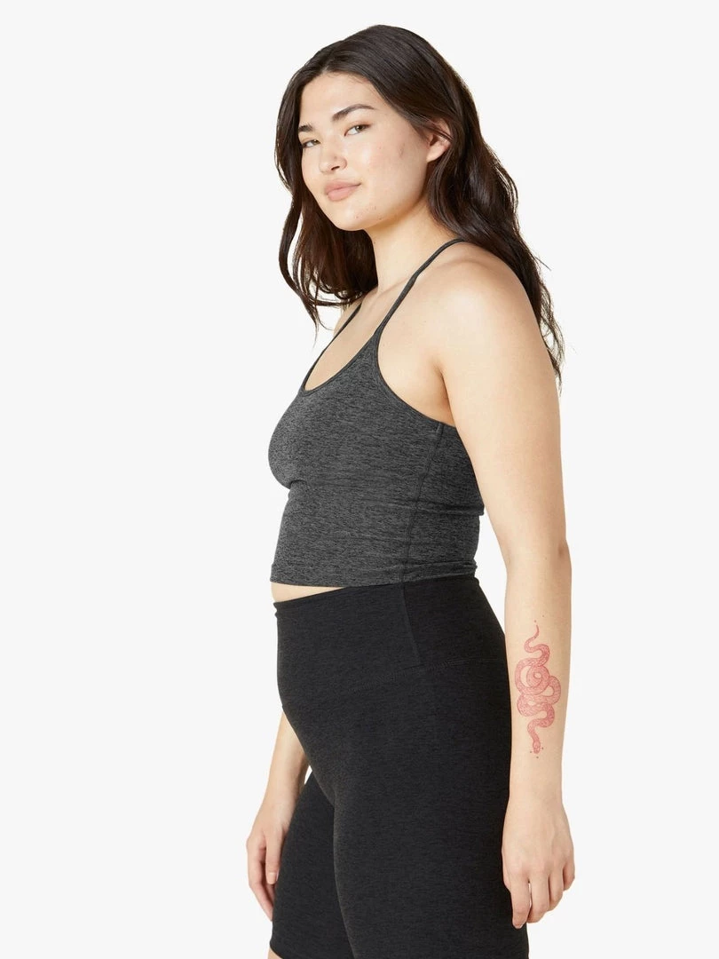 It’s everyone’s favorite super soft Spacedye! This best-selling skinny racerback tank features a shelf bra for plenty of support. With cute cropped silhouette and all-over soft brown leopard print, it’s the perfect wardrobe staple.