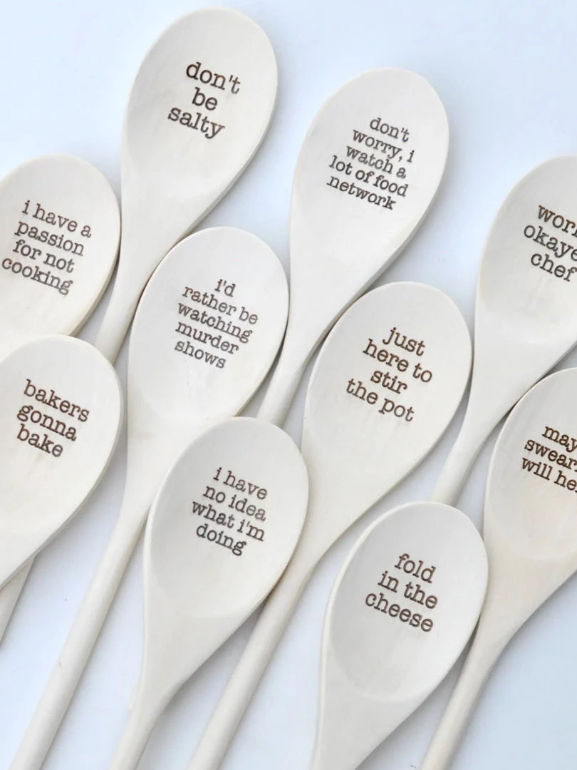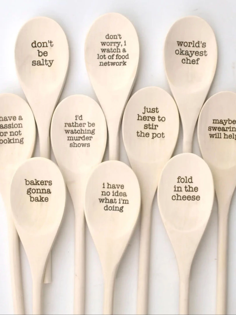 These wood spoons will make you laugh every time you grab one! Choose from ten different phrases, or buy a set of ten and share with friends and family. They make a great addition to a housewarming gift or as stocking stuffers, too!