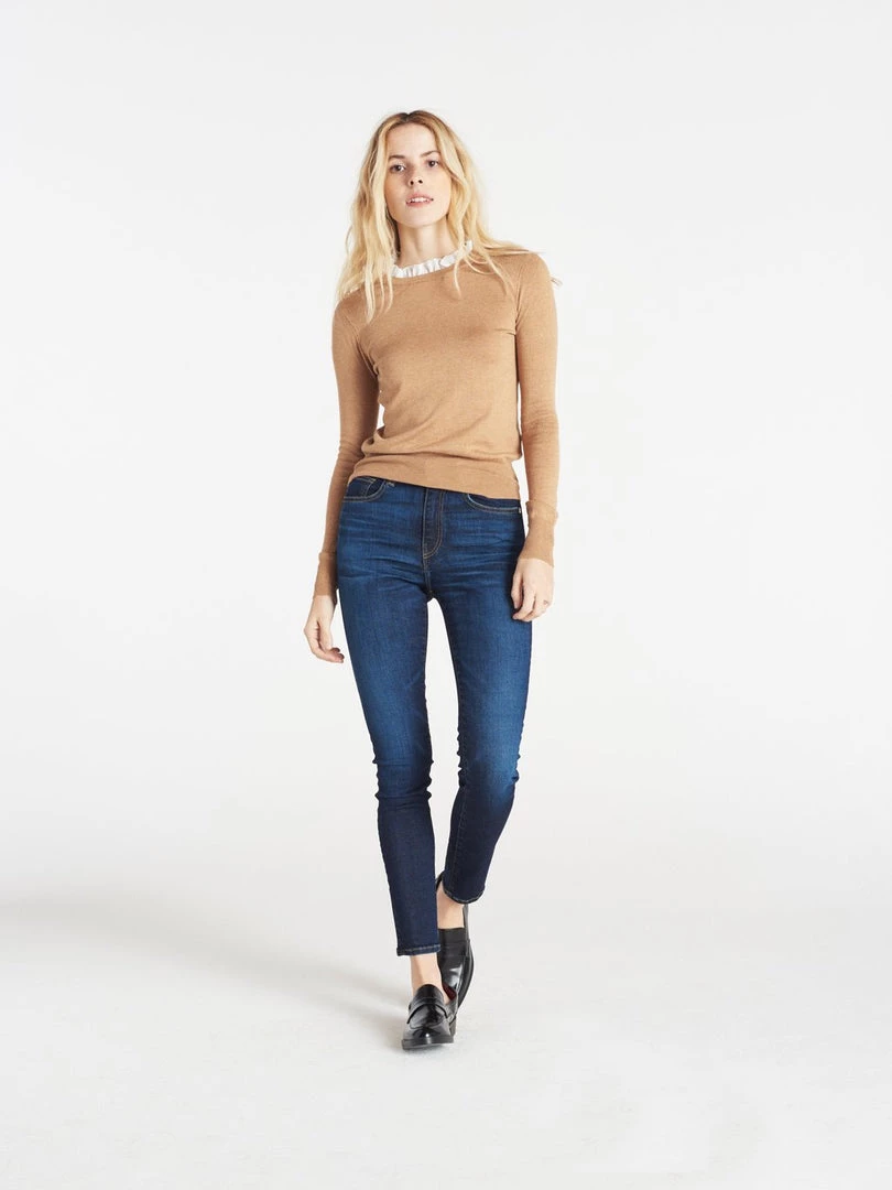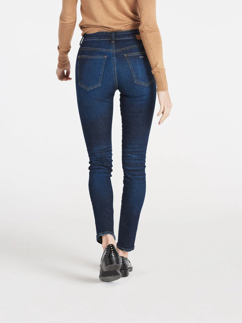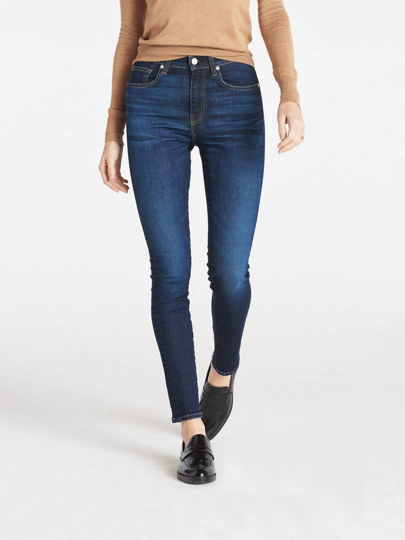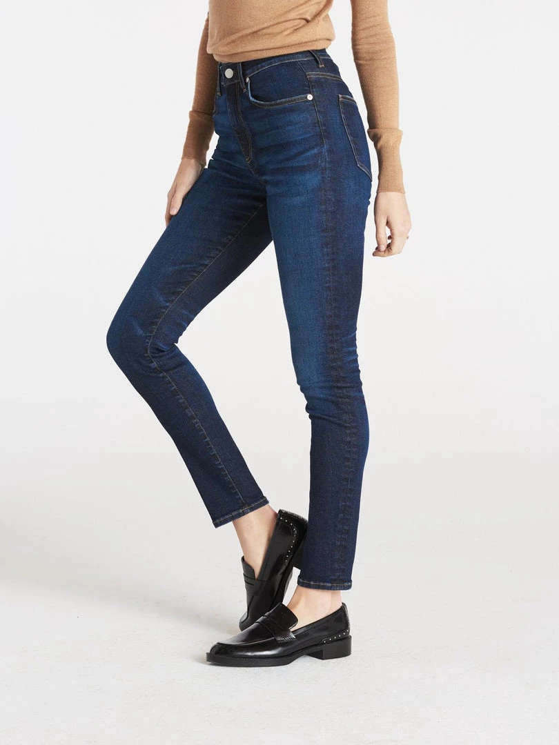 The Palme in Influence is a high-rise skinny jean crafted from Japanese stretch denim featuring a timeless dark indigo wash. Dashes of whiskering add depth to the faded finish, and subtle wear along the edges highlights the classic five-pocket design.