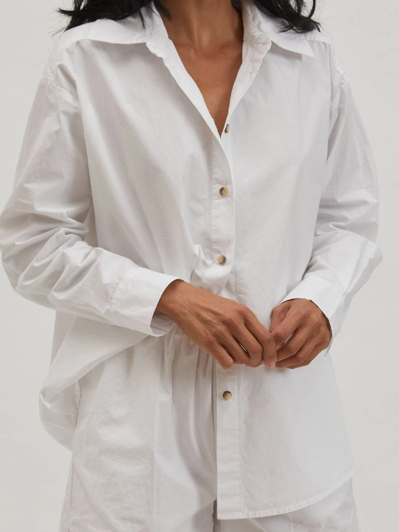 Cotton poplin button down long sleeve shirt with tortoise buttons