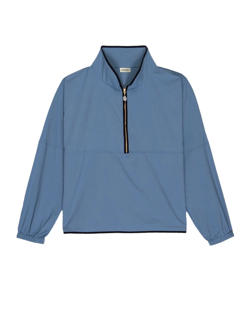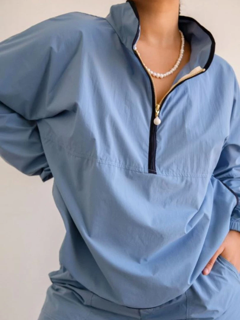 Nylon 1/2 zip pullover with front pocket, rectangular freshwater pearl, & contrast binding