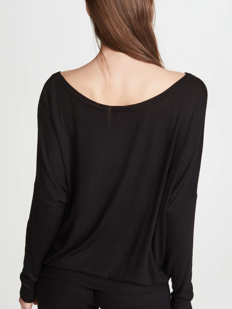The Elon collection is simple, clean cut and destined to become a classic. These versatile, mix and match pieces in soft, finely ribbed fabric will be the ones you reach for over and over, whenever you want to lounge in style. The ballet top has a face-framing neckline and pairs perfectly with the shorts, cropped pants or leggings.