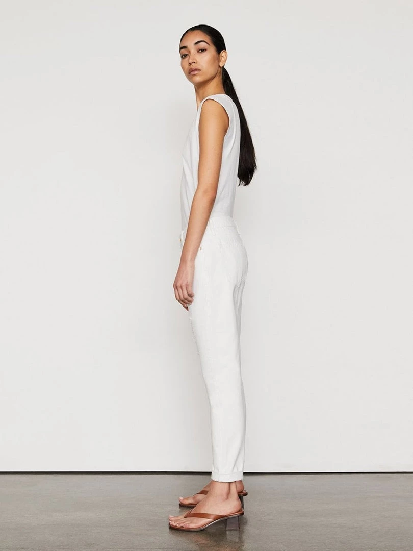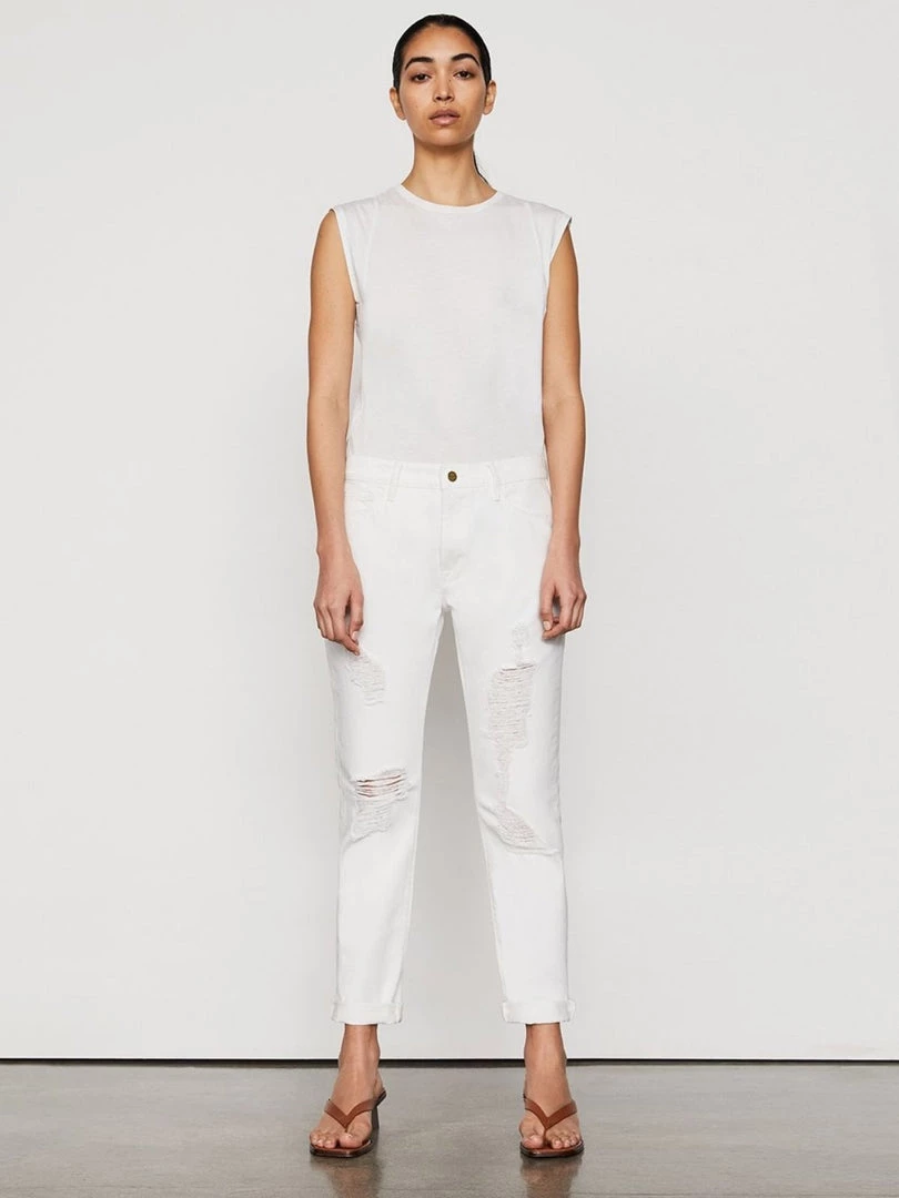 A FRAME classic, this mid-rise jean is a relaxed take on a classic skinny jean and intended to be worn slightly oversized. We recommend sizing down if you prefer a more fitted look. Style yours with an oversize blazer atop a sweatshirt for modern, country club vibes.