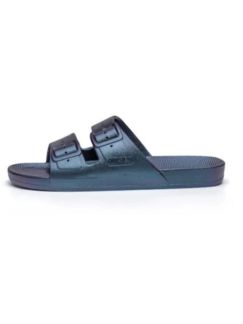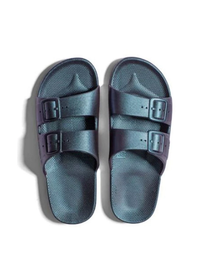 At Freedom Moses we’re all about celebrating summer 365 days a year. From am to pm, Our vegan & recyclable slides are injected with air so you feel like you’re walking on a cloud. Whether chilling at the beach or just hanging out, we’re also available for your whole crew, from kids slides to women’s slides and men’s slides, if you’re into prints, glitters, metallics or basic colors we’ve got you covered.