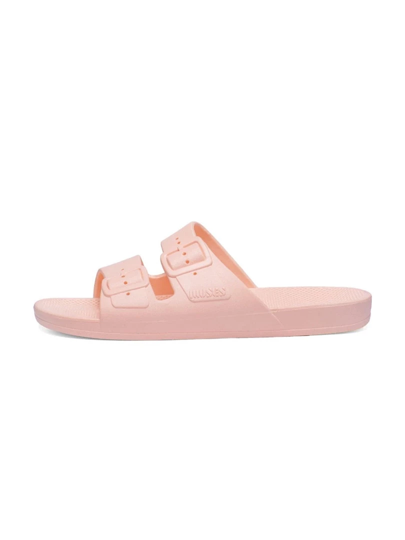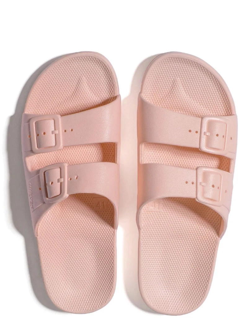 At Freedom Moses we’re all about celebrating summer 365 days a year. From am to pm, Our BABY vegan & recyclable slides are injected with air so you feel like you’re walking on a cloud. Whether chilling at the beach or just hanging out, we’re also available for your whole crew, from kids slides to women’s slides and men’s slides, if you’re into prints, glitters, metallics or basic colors we’ve got you covered.