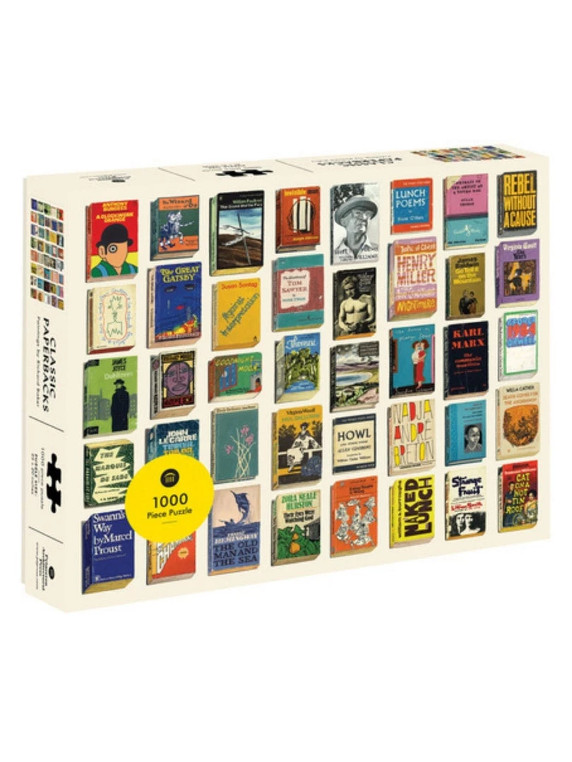 Piece together your own colorful collection of vintage paperback book covers Classic Paperbacks 1000 Piece Puzzle features artist Richard Baker’s incredible paintings of beloved real books, including works by Emily Dickinson, Richard Wright, Sandra Cisneros, and Susan Sontag, among other literary luminaries. Each book portrait captures the signs of wear that all bibliophiles can appreciate from their own most-loved reads. The perfect gift for book lovers and collectors everywhere.