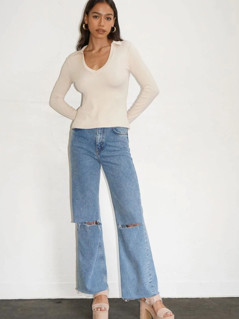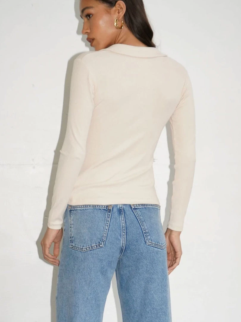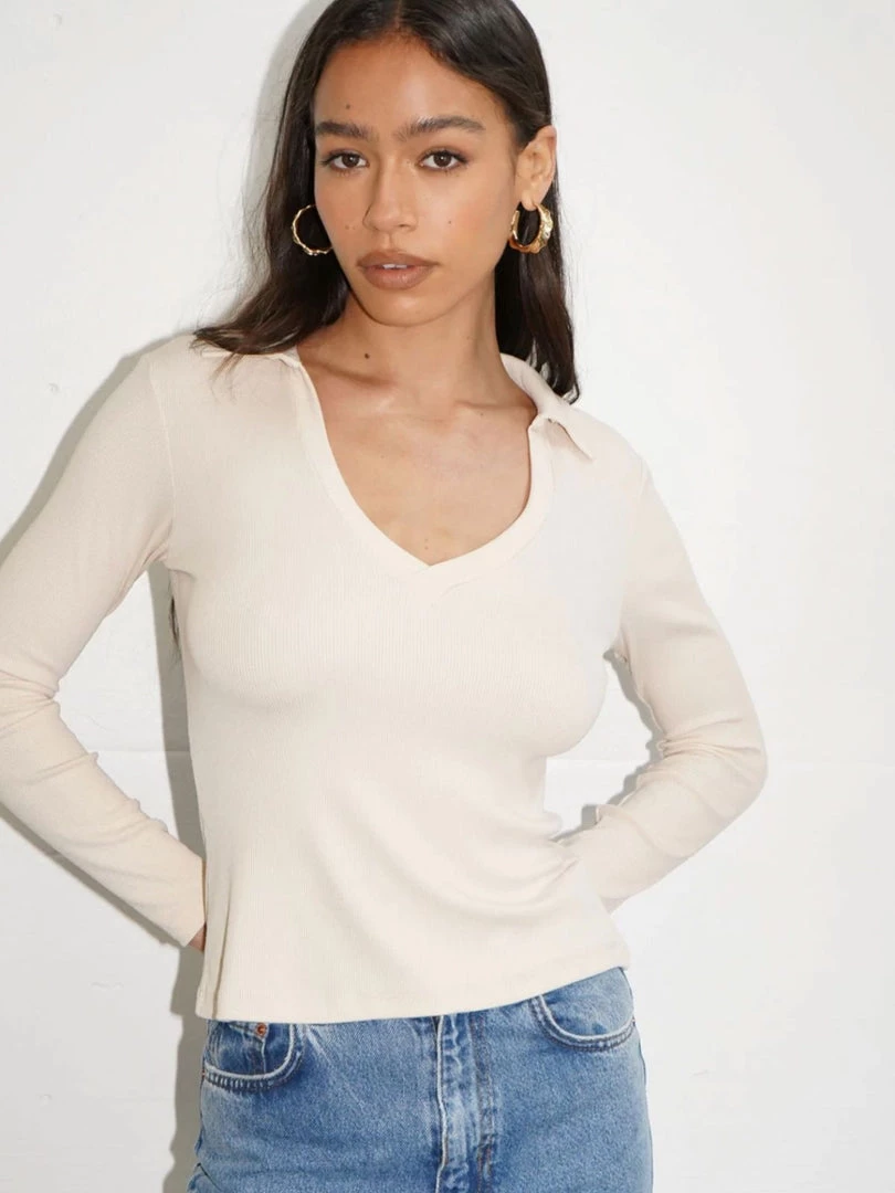Fitted collared top with long sleeves and a v necklineÂ