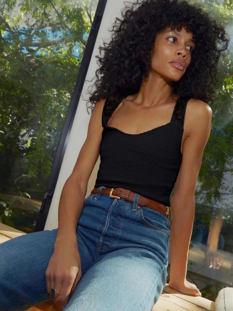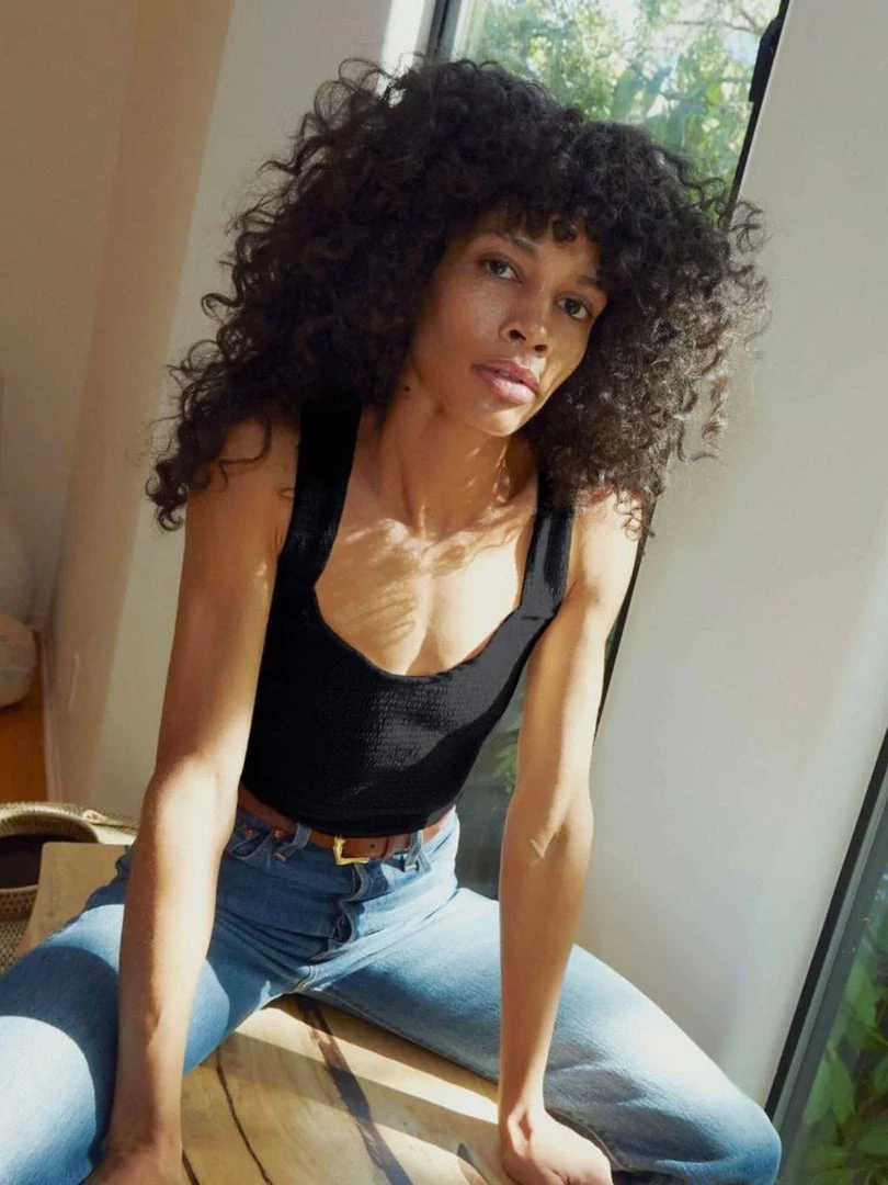 This feminine bustier-inspired smocked tank feels like the 1980s in all the best ways.