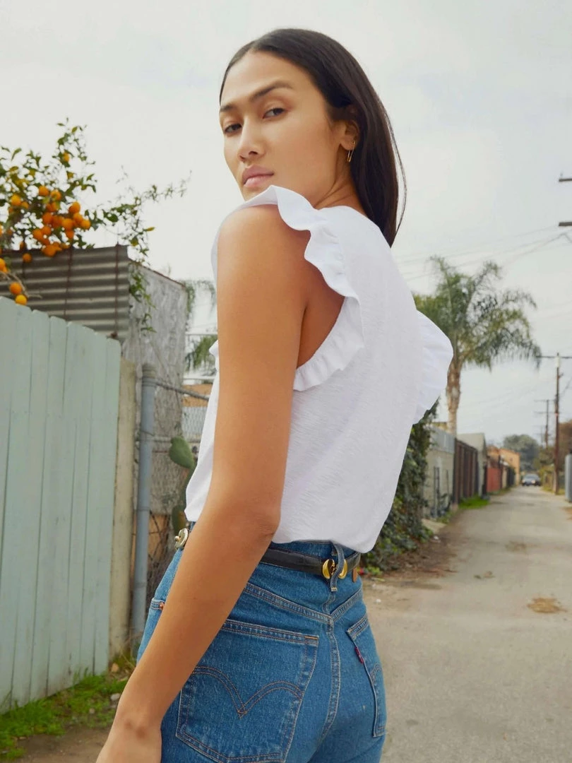 This is not your average ruffle tank: the ruffles are lightly fused, which adds a little extra kick (and makes your waist look smaller). You’re welcome.