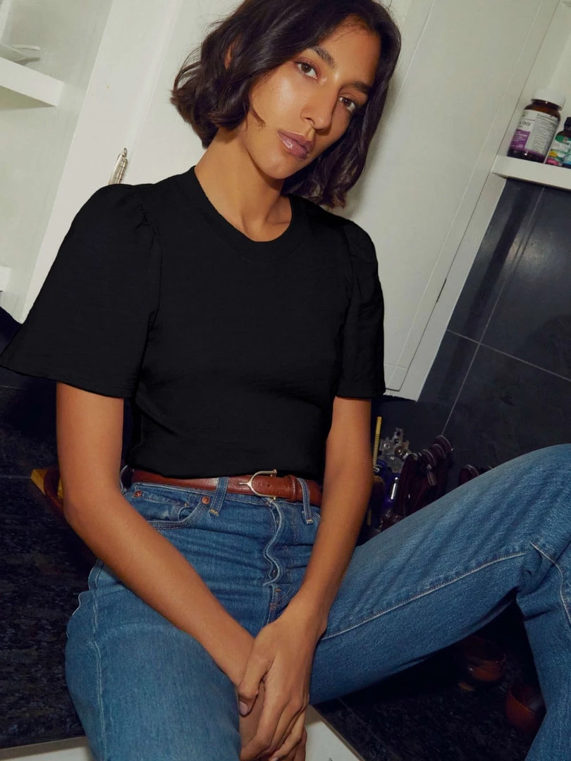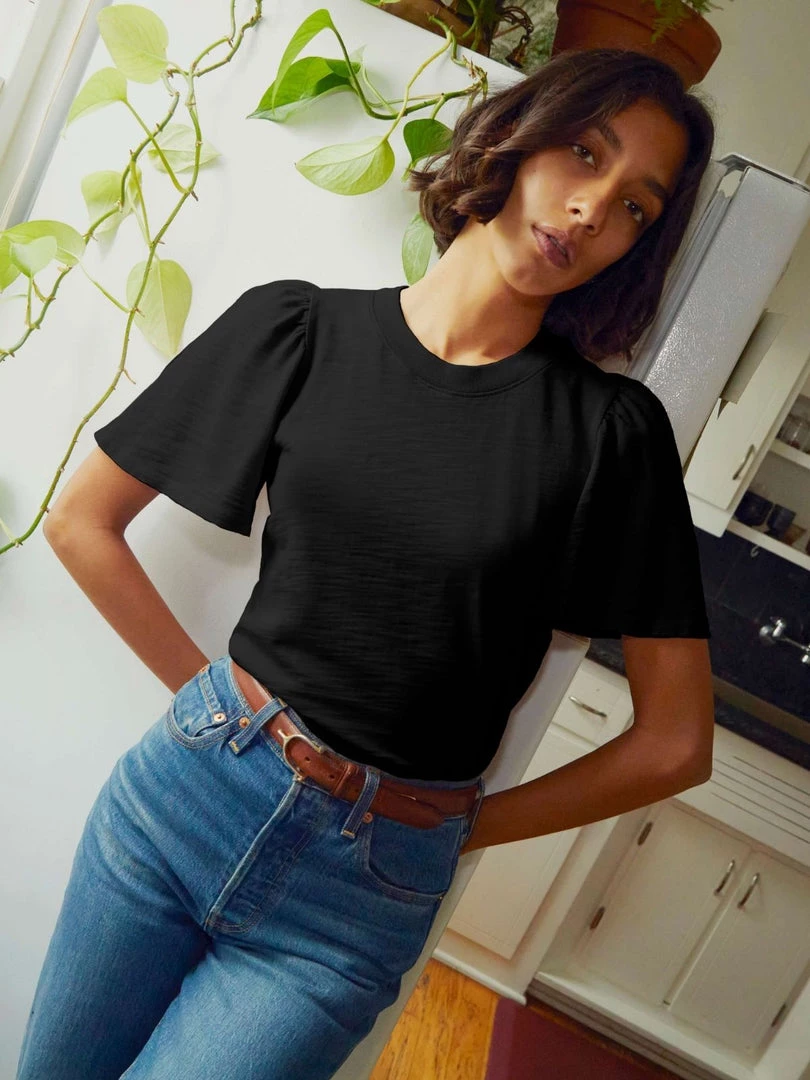 The playful flutter sleeves on this mock neck make it the one to wear when you want your outfit to do the flirting for you…