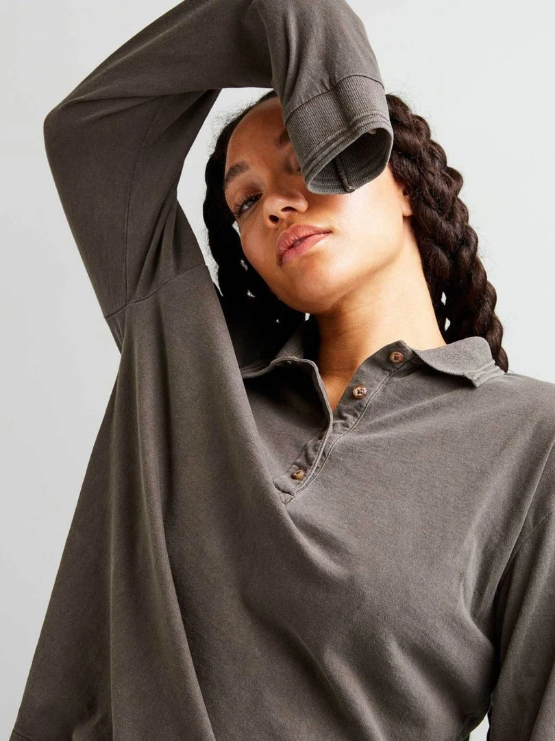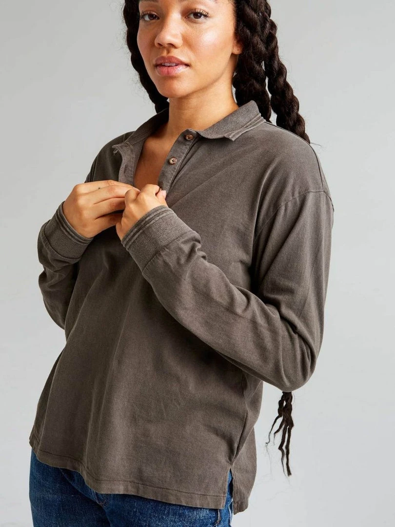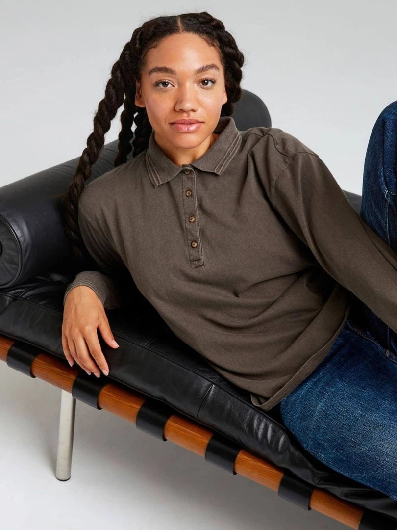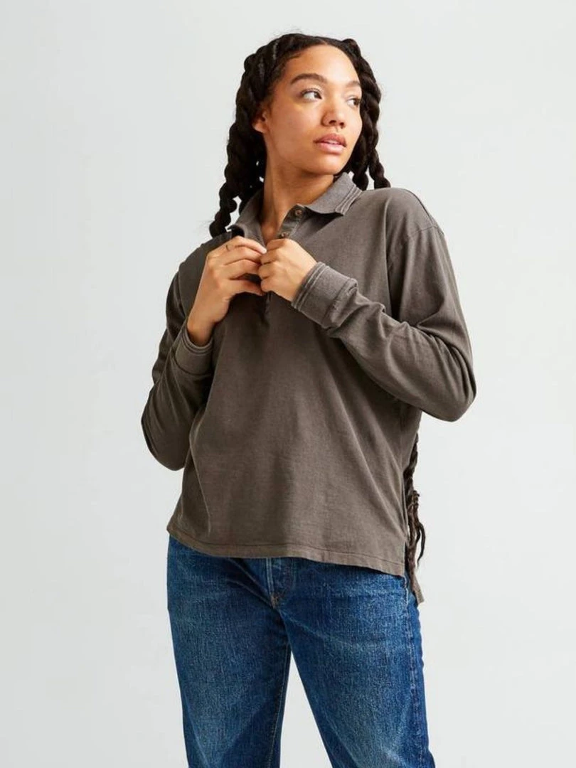 RicherPoorer Relaxed Long Sleeve Polo – Bitter Brown