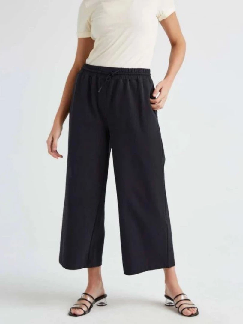 RicherPoorer Terry Wide Leg Pant – Black Clothing