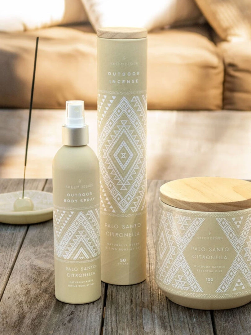Many people know of Palo Santo as the mystical wood from South America that’s burned in rituals and believed to bring good fortune. But few people know that it is also commonly burned to keep bugs away. We love the idea of blending Palo Santo essential oil with citronella oil, a proven all-natural insect repellent. The resin in the Palo Santo is naturally aromatic and this alluring combination produces a woodsy scent that mixes tea tree and cedar with citrus undertones. Your outdoor gatherings will smell great while keeping biting bugs at bay.