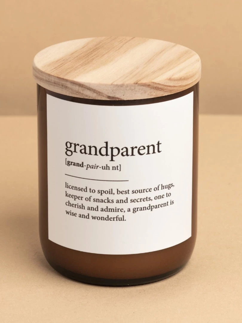 “grandparent – licensed to spoil, best source of hugs, keeper of snacks and secrets, one to cherish and admire, a grandparent is wise and wonderful.”