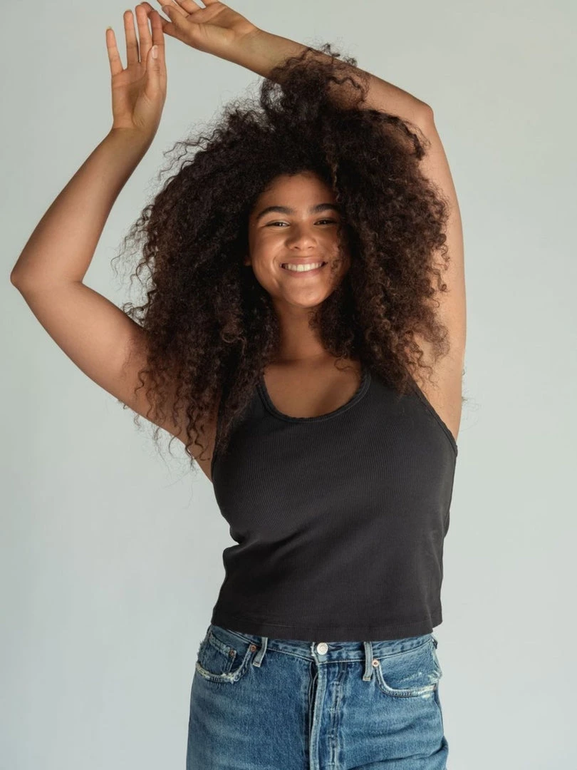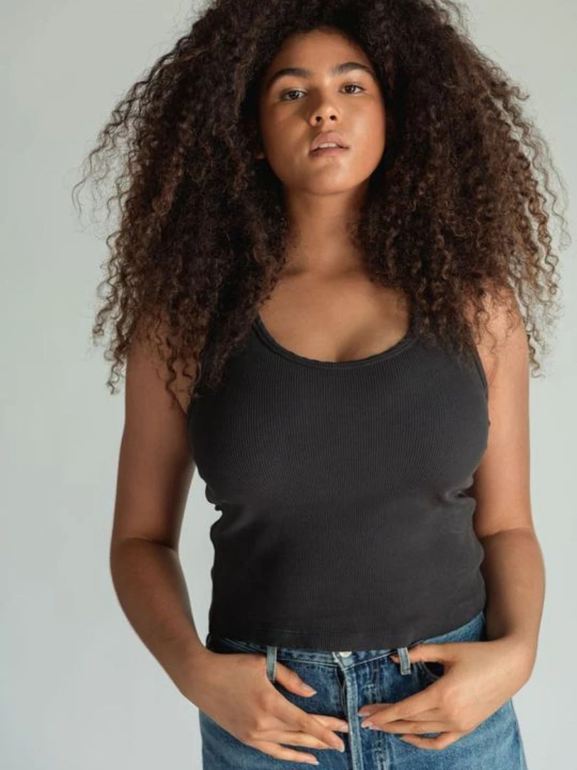 The Blondie Tank is a structured tank with a 2×1 rib. It is cropped to fit perfectly with high waisted pants or shorts.