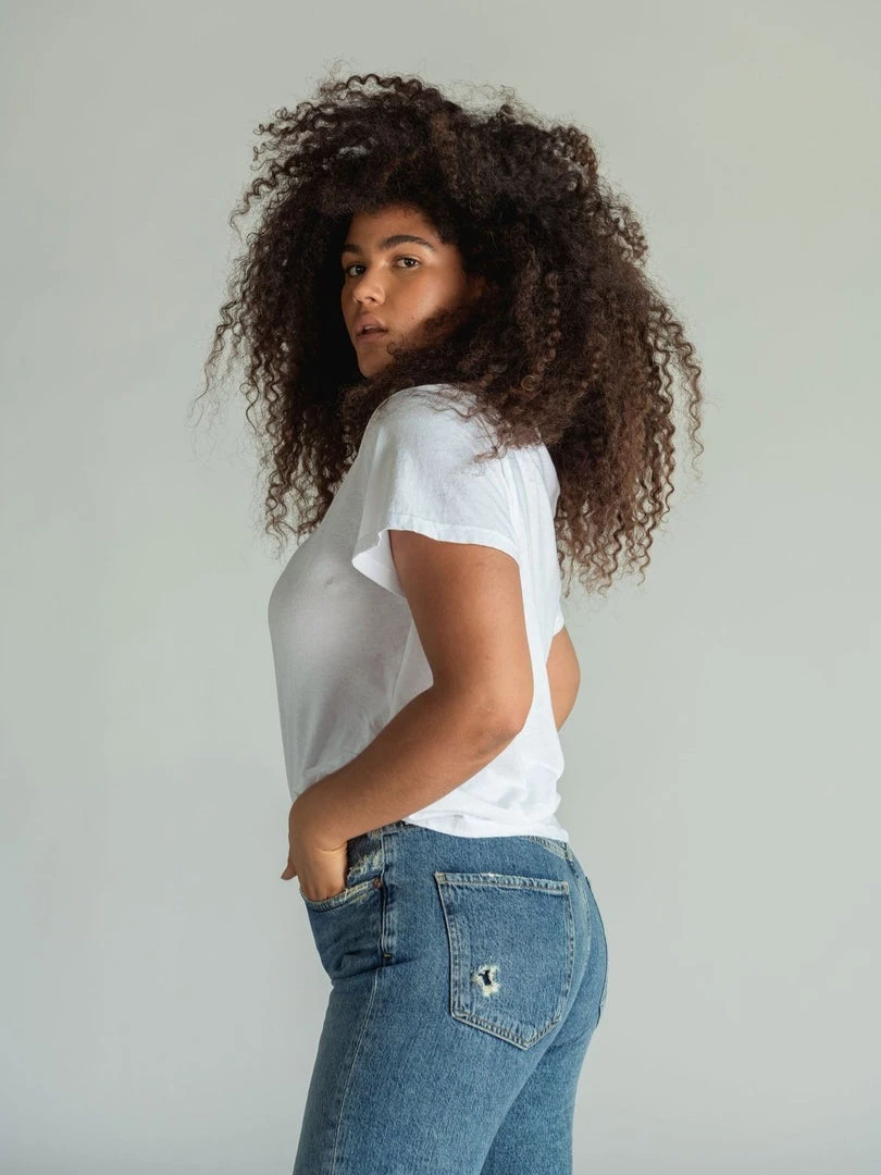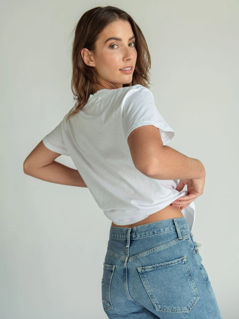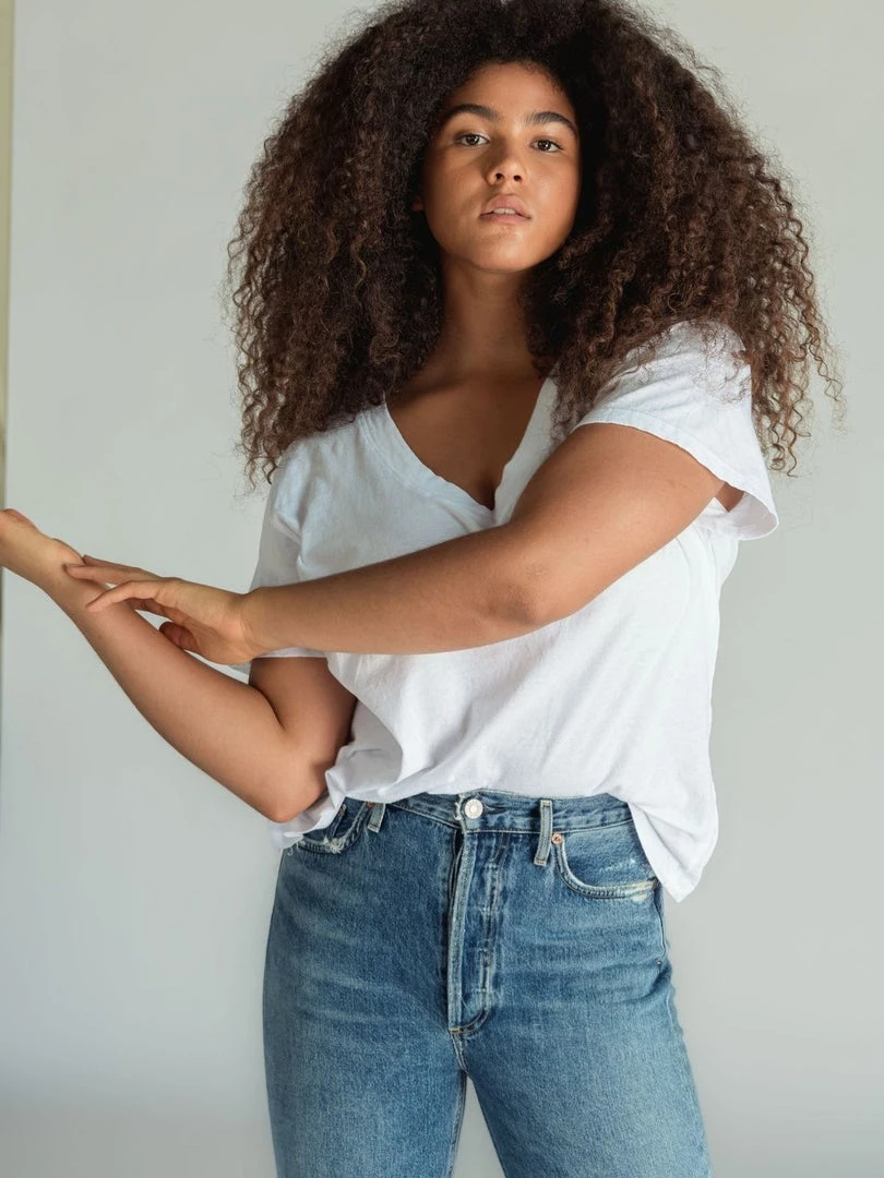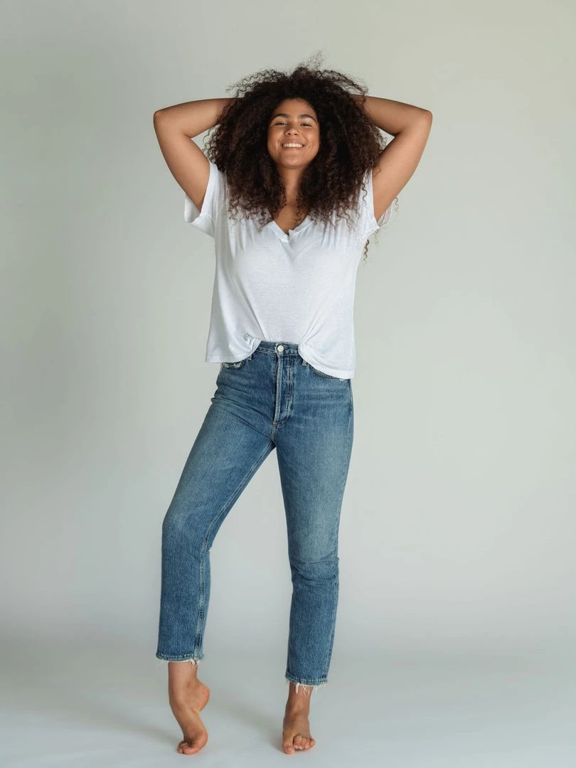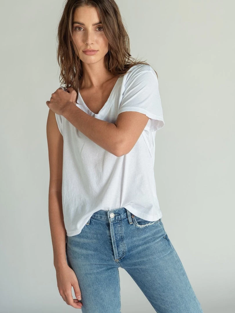 We created the perfect slightly oversized v-neck. Deep enough neckline… but not TOO deep.