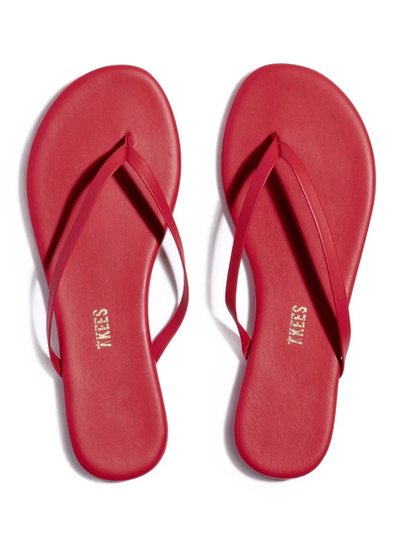 Designed to feel like a second skin, Tkees’ Solids thong sandals are handcrafted of soft Brazilian leather.
