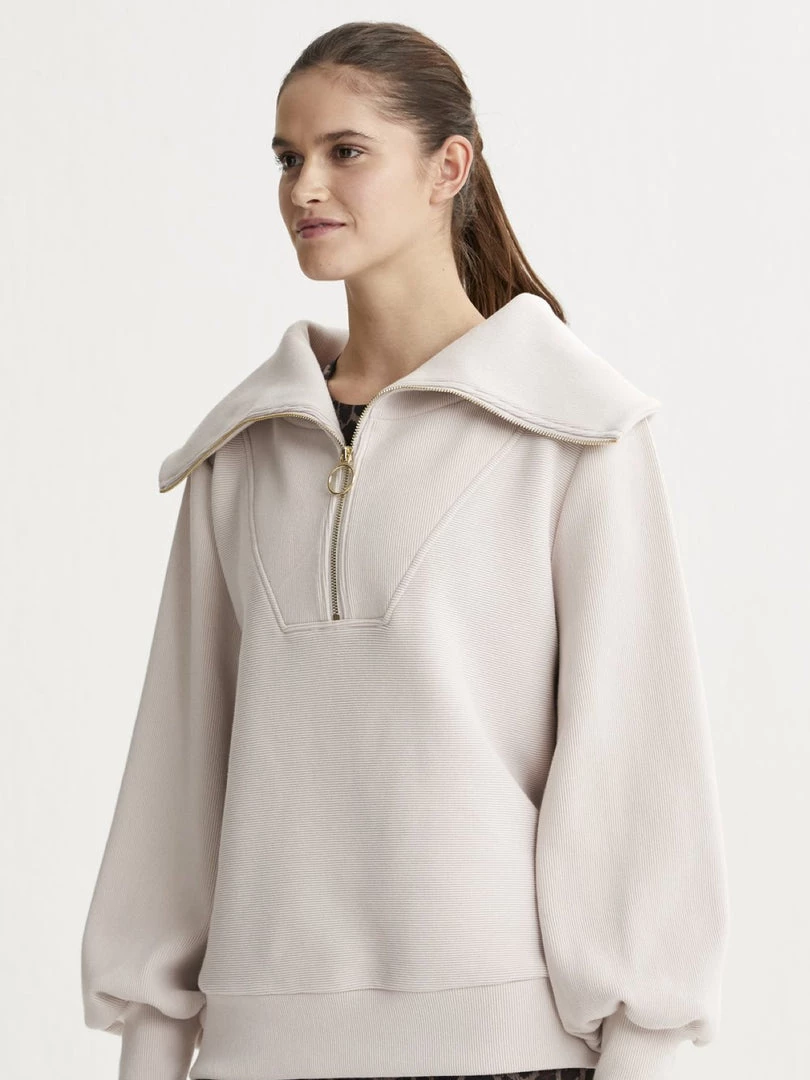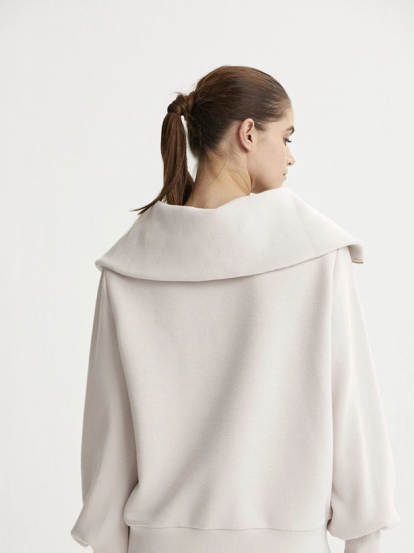 Made from our signature ottoman rib fabric, the Vine Pullover is the perfect workout-to-weekend piece. This style features an exaggerated collar and sleeves, along with a hoop zipper.